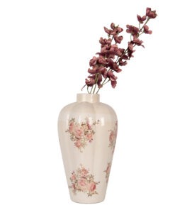 Διακοσμητικό βάζο της εταιρείας Clayre & Eef, διακοσμημένο με ροζ λουλούδια.