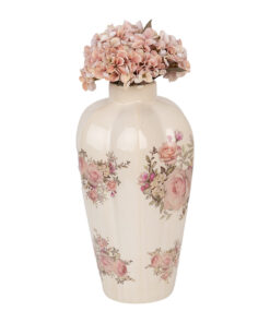 Διακοσμητικό βάζο της εταιρείας Clayre & Eef, διακοσμημένο με ροζ λουλούδια.