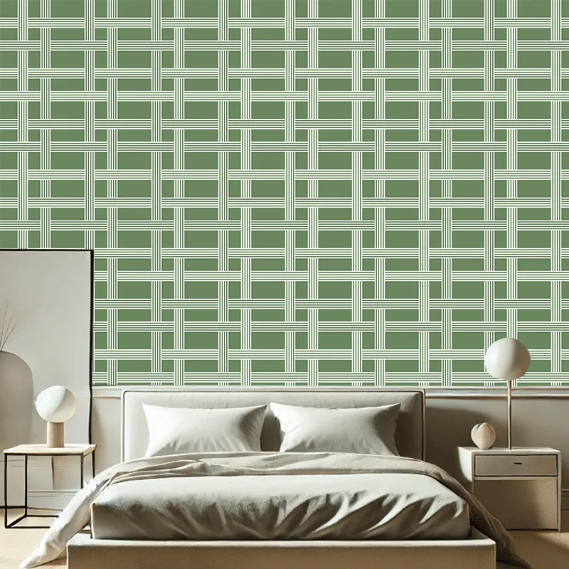 Γραμμικό μοτίβο ψάθας σε ελαιοπράσινο για μοντέρνα υφή σε υπνοδωμάτια ή σαλόνια.