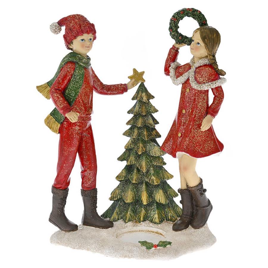 Ζευγάρι παιδιών που στολίζουν δέντρο.