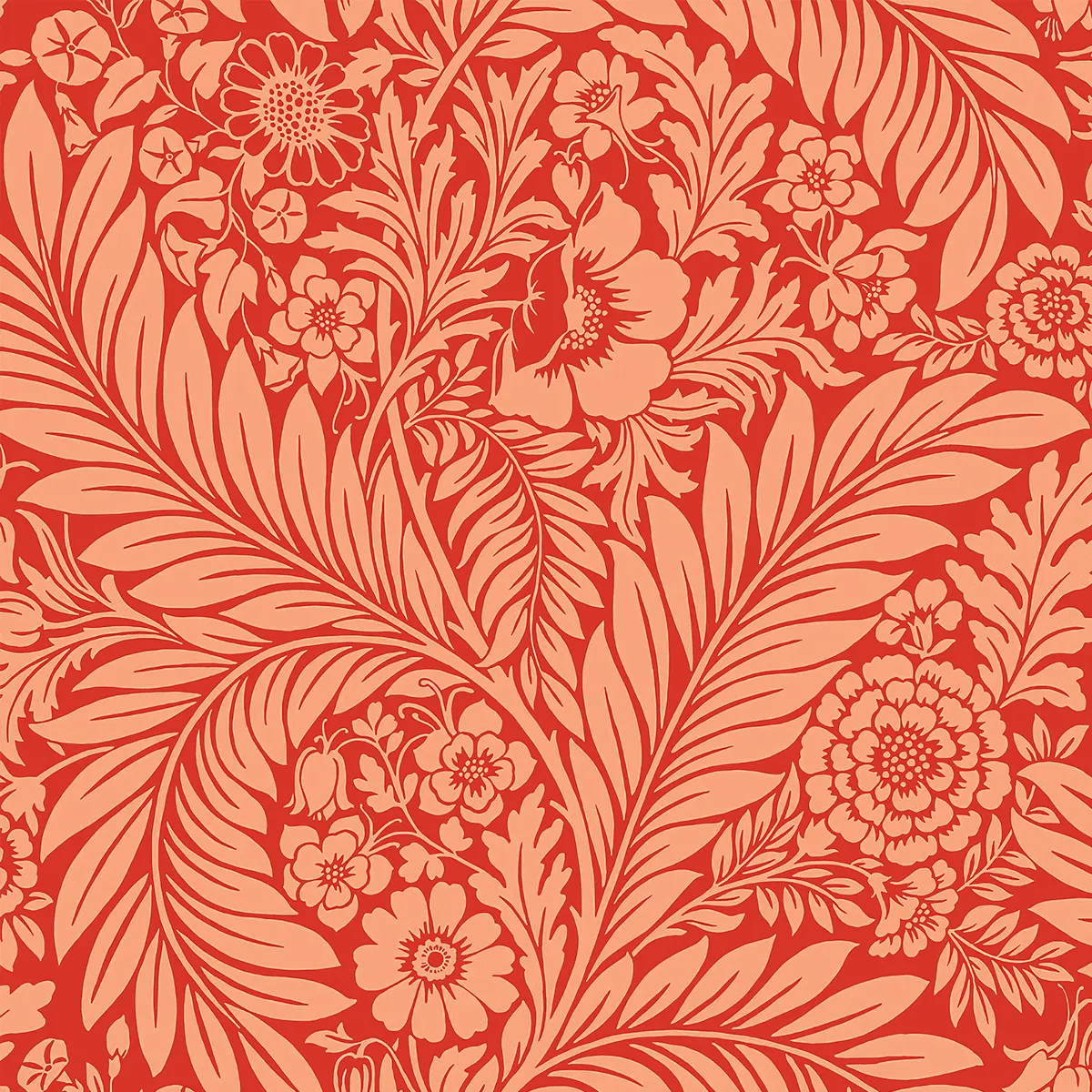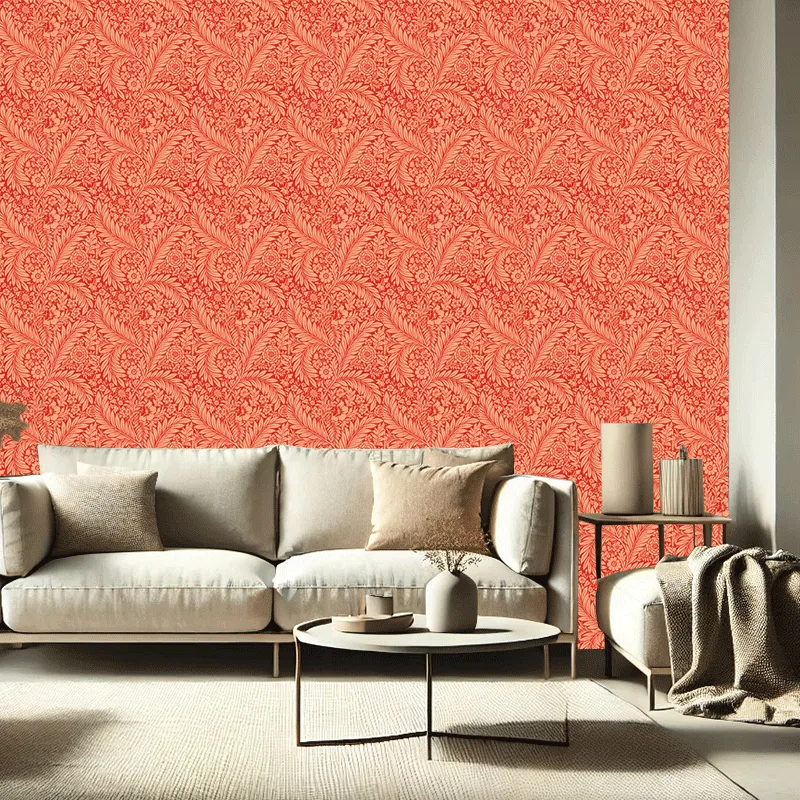 Κλασικό και διαχρονικό σχέδιο με μεγάλα φύλλα και λουλούδια σε απόχρωση του κόκκινου.