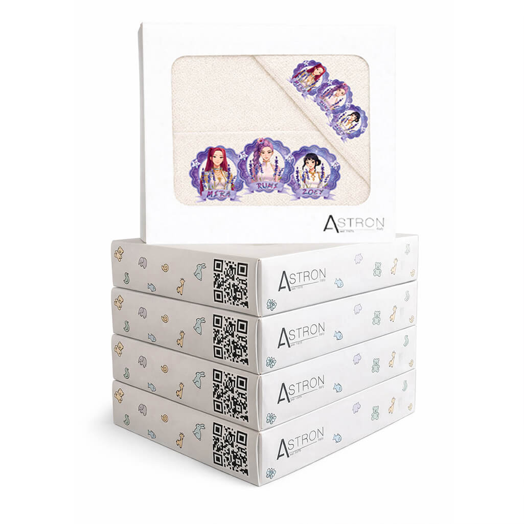Παιδικές πετσέτες από την εταιρεία Astron Italy σε αποχρώσεις και σχέδια. Είναι κατασκευασμένες από 100% βαμβάκι.