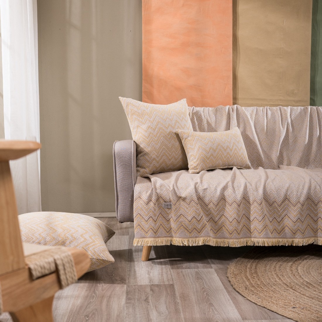 Τα υφάσματα υφαίνονται στην Ελλάδα από ελληνική υφαντουργία και μεταποιούνται από την εταιρεία Teoran.