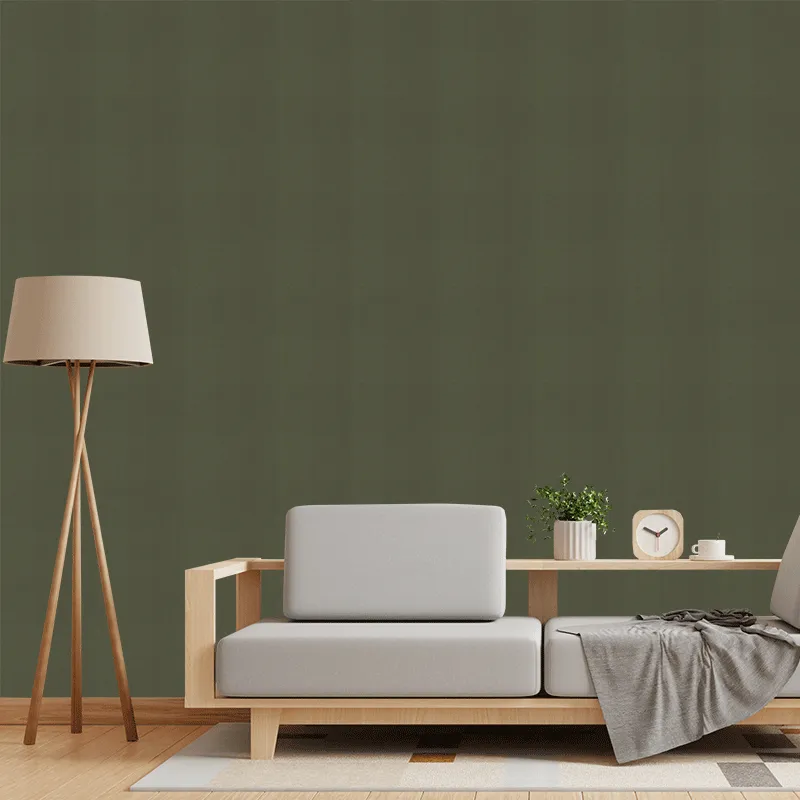 Λινή ταπετσαρία σε πράσινη ελιά, δίνει γήινη αύρα στο σαλόνι.